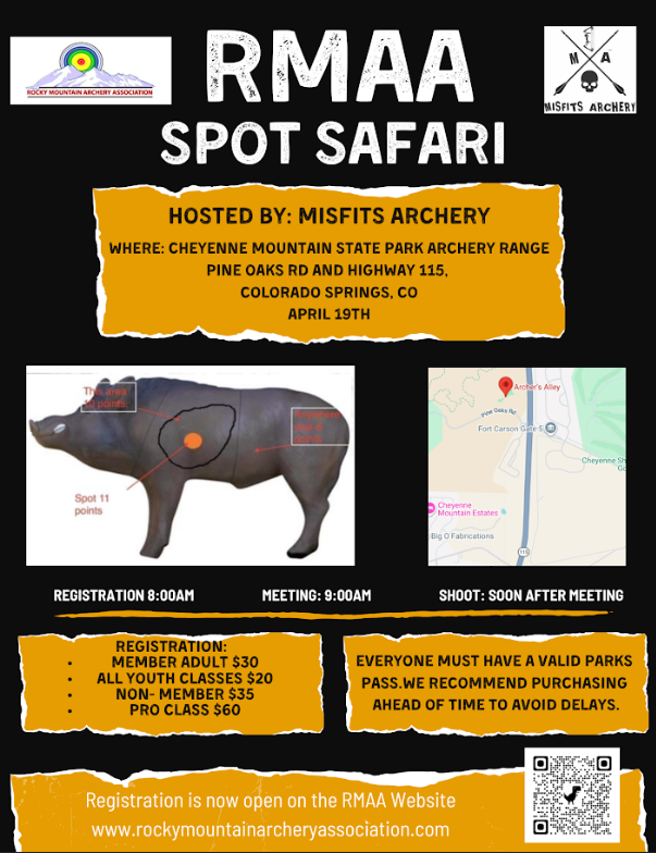 The RMAA is an archery club that organizes and promotes competitions throughout the Front Range. Tournaments encompass several archery disciplines, including Indoor, 3D, field, and target.